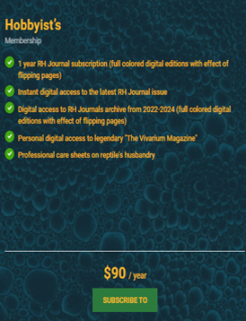 Launched in March 2022 as official publication of the Responsible Herpetoculture Foundation (RHF) the Responsible Herpetoculture Journal (RHJ) is being published rich and content and eye-catching edition on bi-monthly base. RH Journal offers you the original and effective platform to show your products, service and achievements to educated audience of over 46 700 followers for today. … Continue reading Subscription